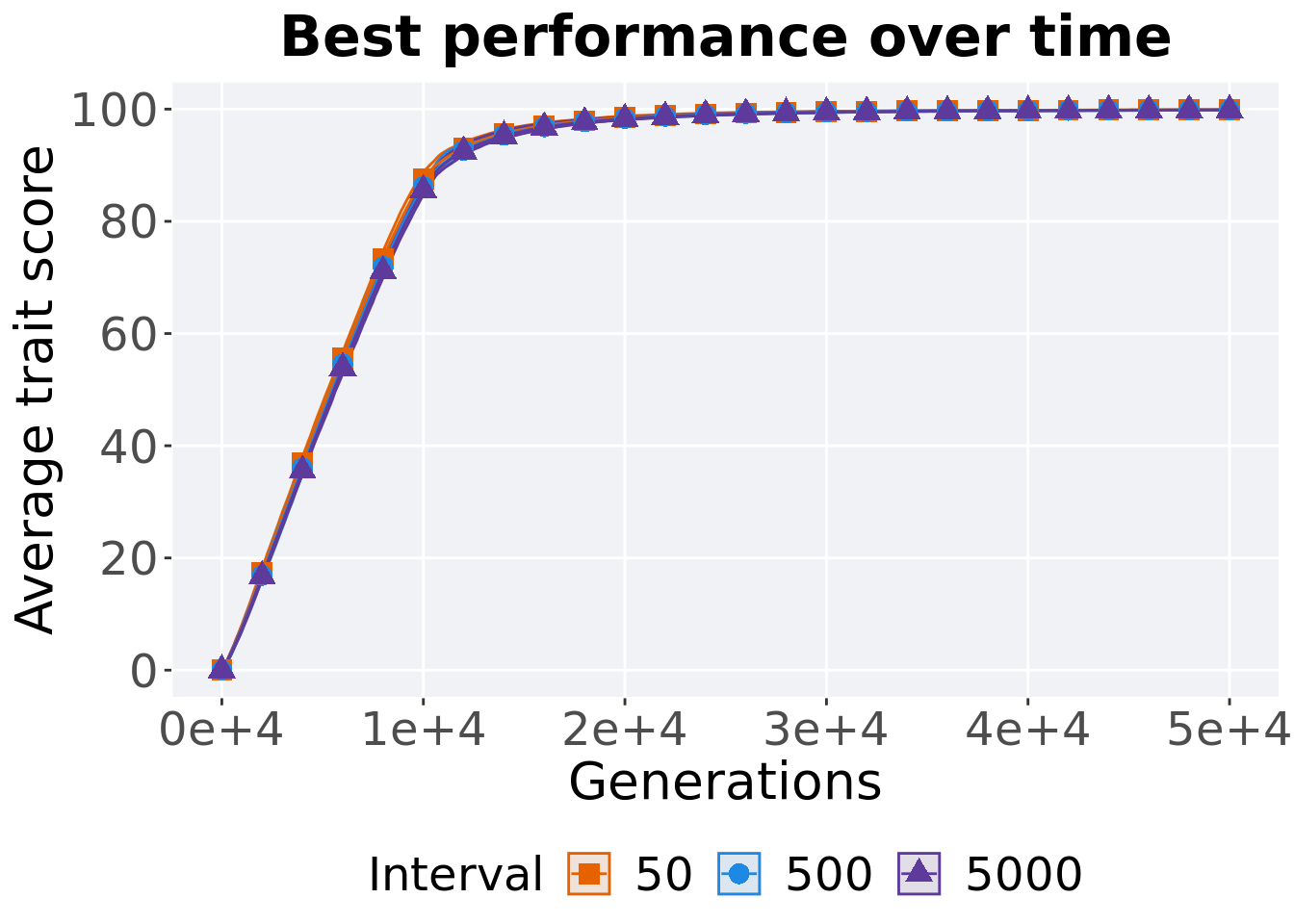 geom_point(data = filter(lines, Generations %% 2000 == 0), size = 2.5, stroke = 2.0, alpha = 1.0) +