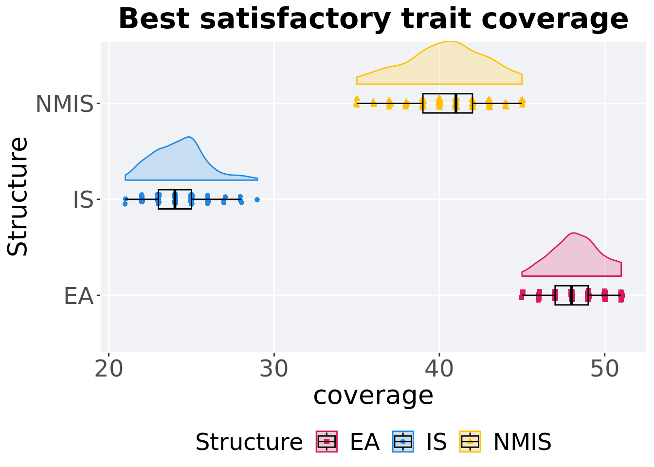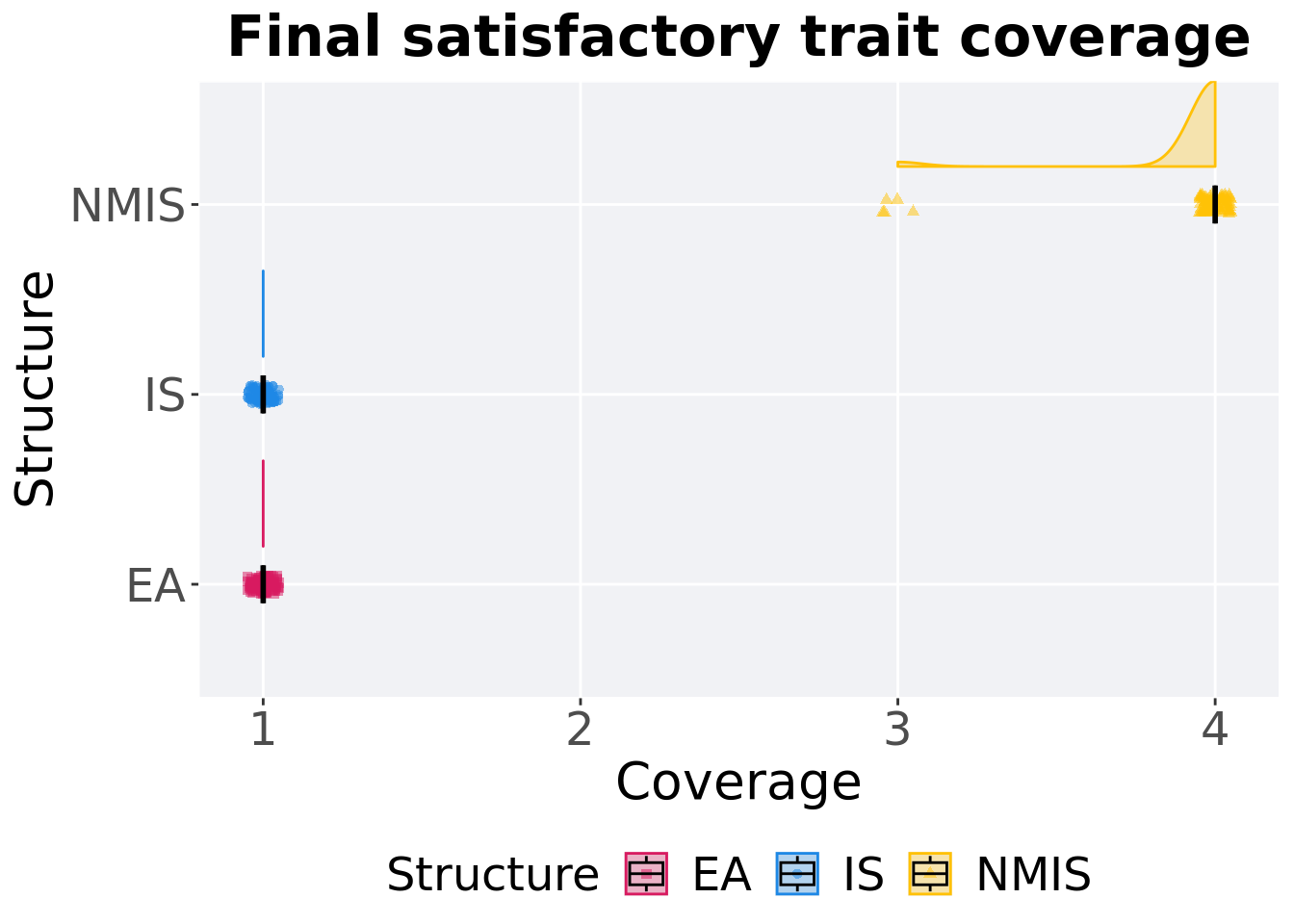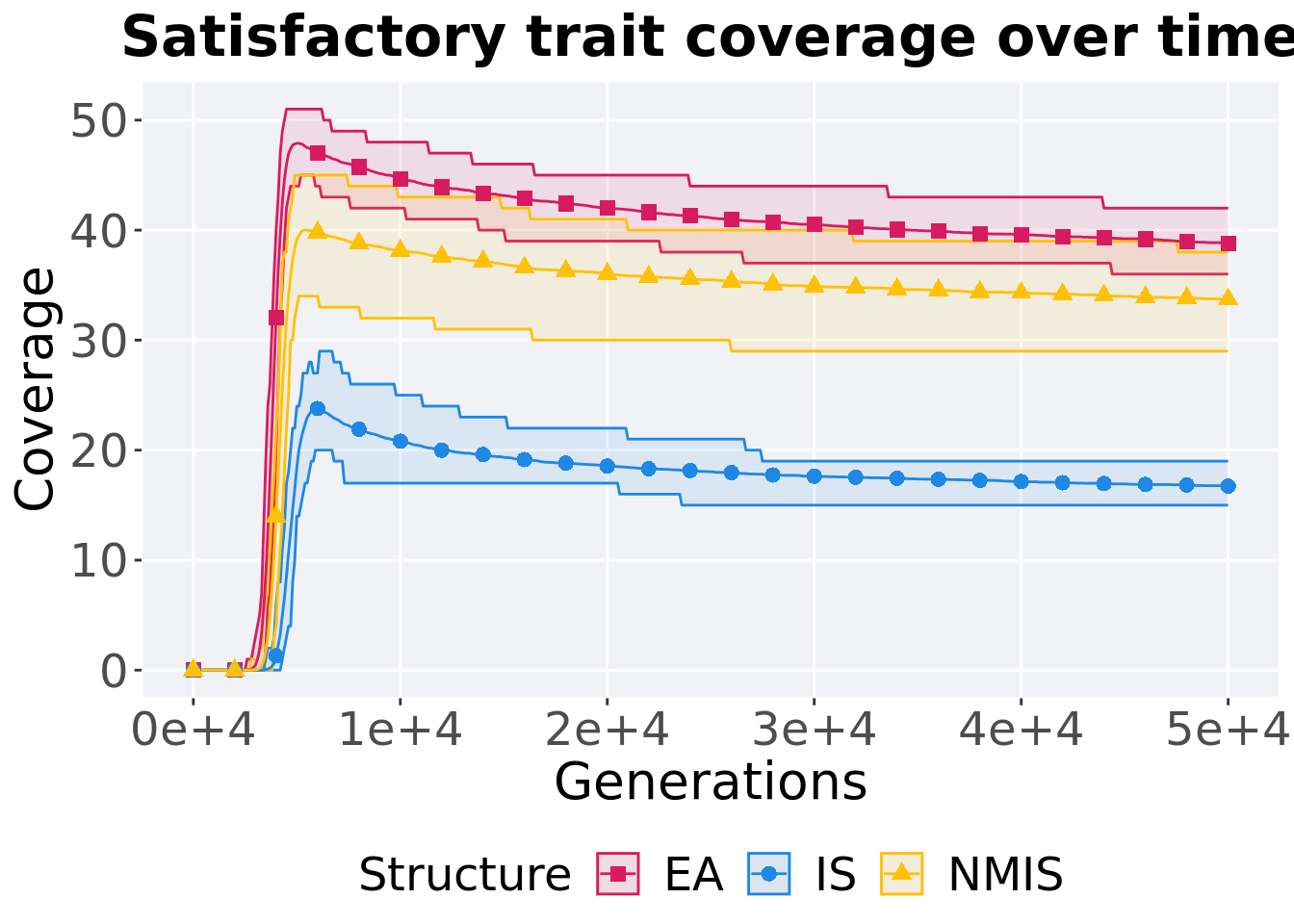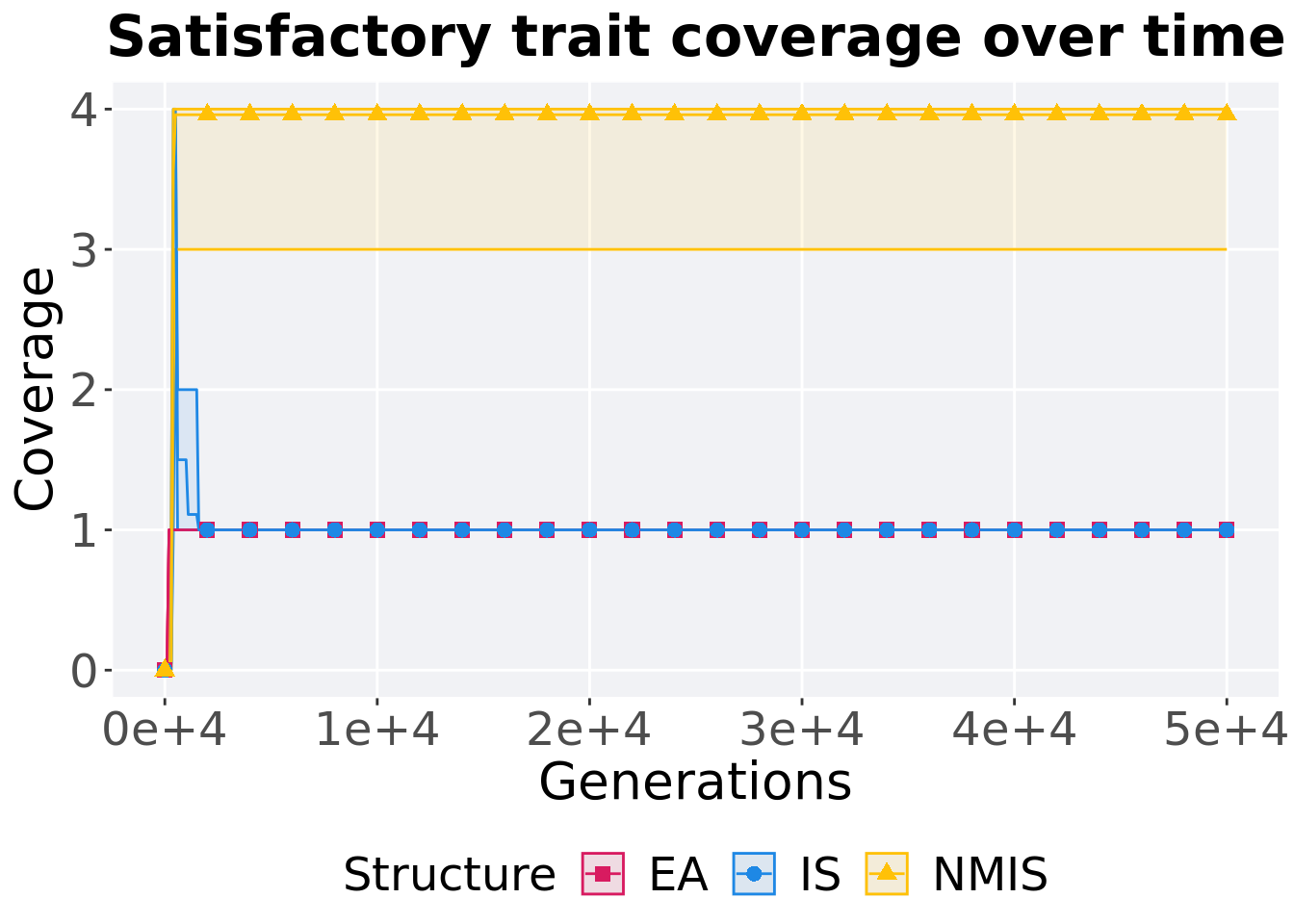 Satisfactory trait coverage in the population at the end of 50,000 generations.