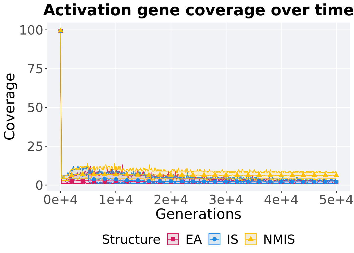 coverage = filter(mi5000_over_time, Diagnostic == 'MULTIPATH_EXPLORATION' & `Selection\nScheme` == 'TOURNAMENT' & Generations == 50000)